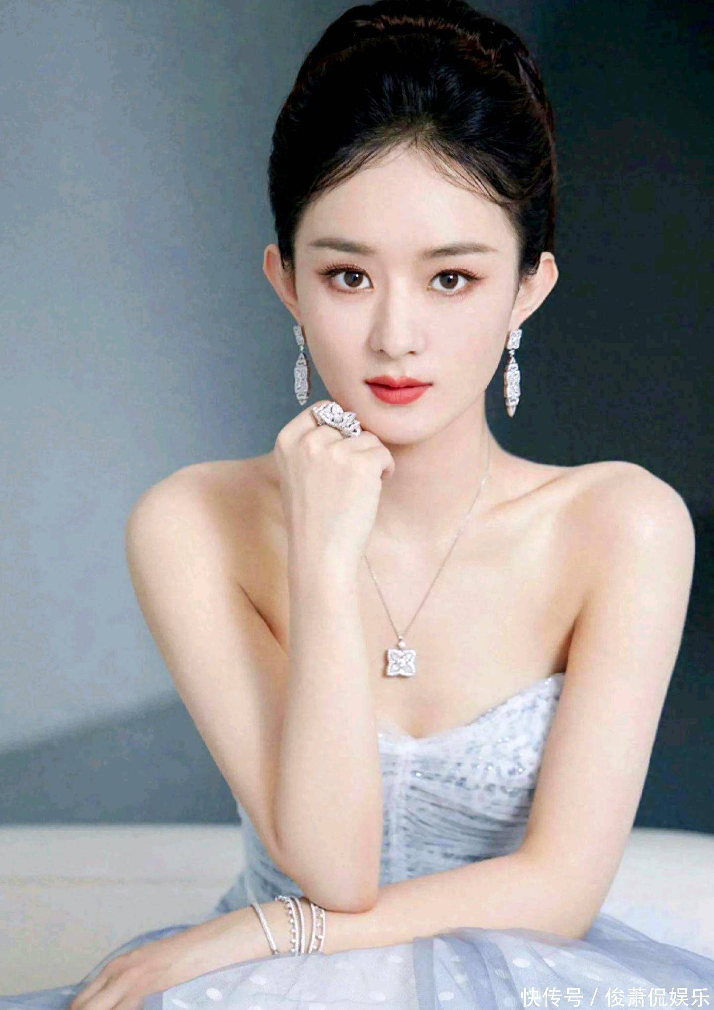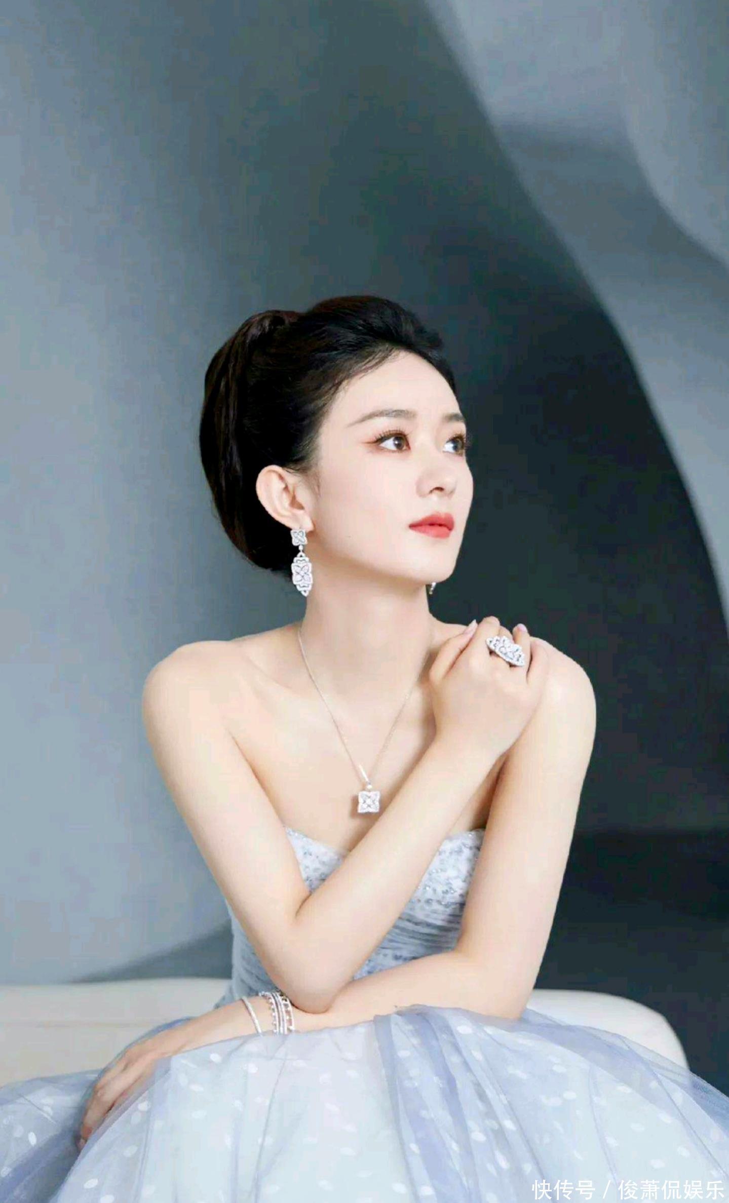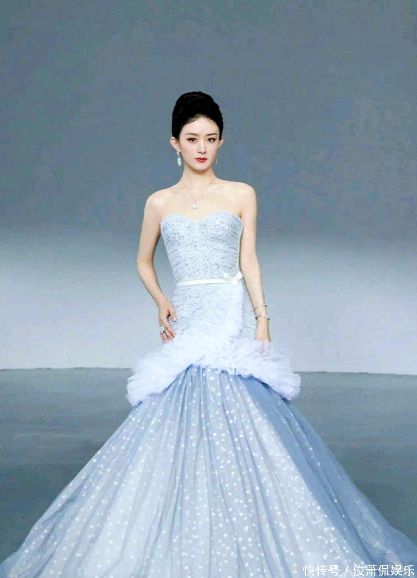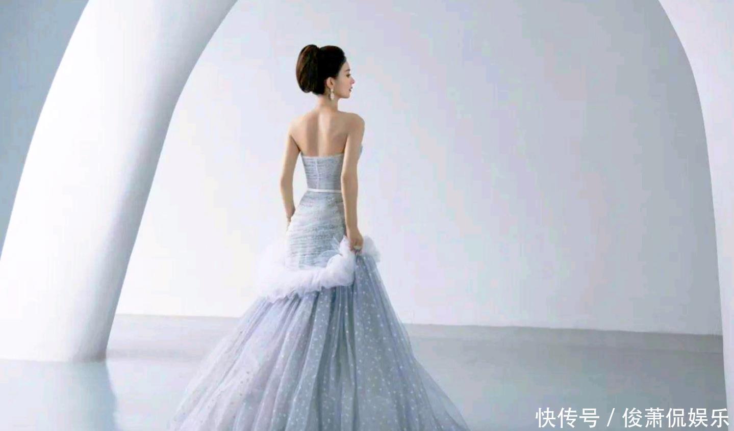当镜头定格在那袭简约灰蓝色抹胸长裙上,赵丽颖的身影在光影交错间宛若一幅流动的油画。